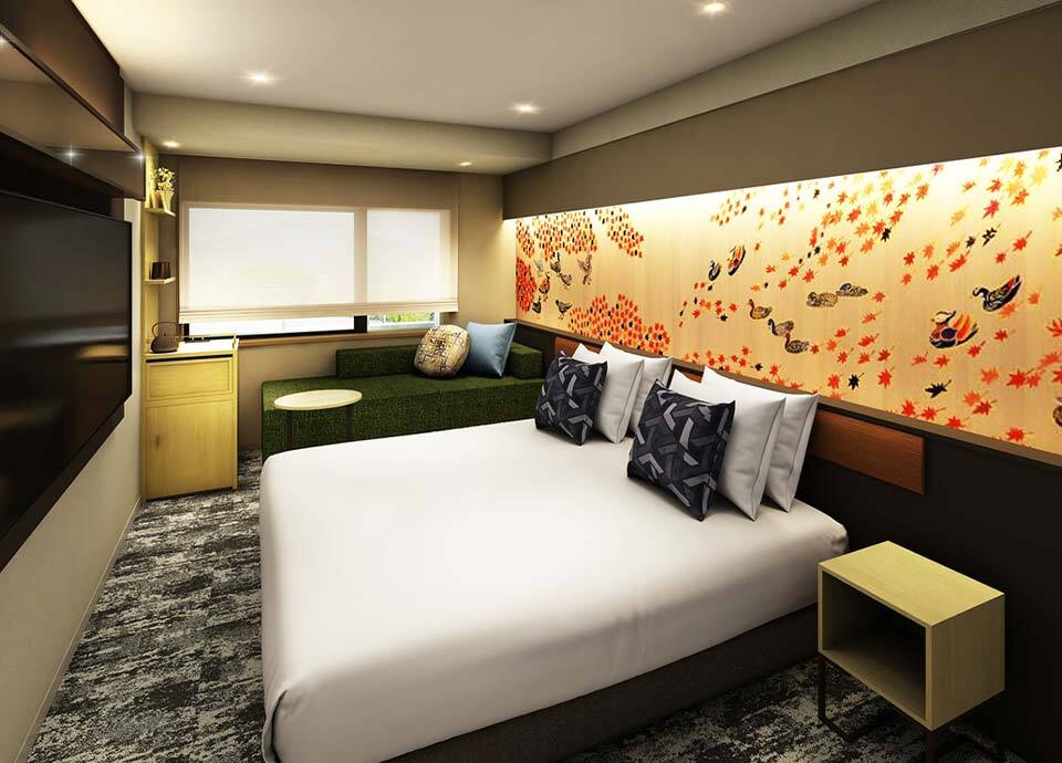 紅葉の意匠が美しく彩る、和の趣とモダンな快適さが融合した心安らぐ空間。