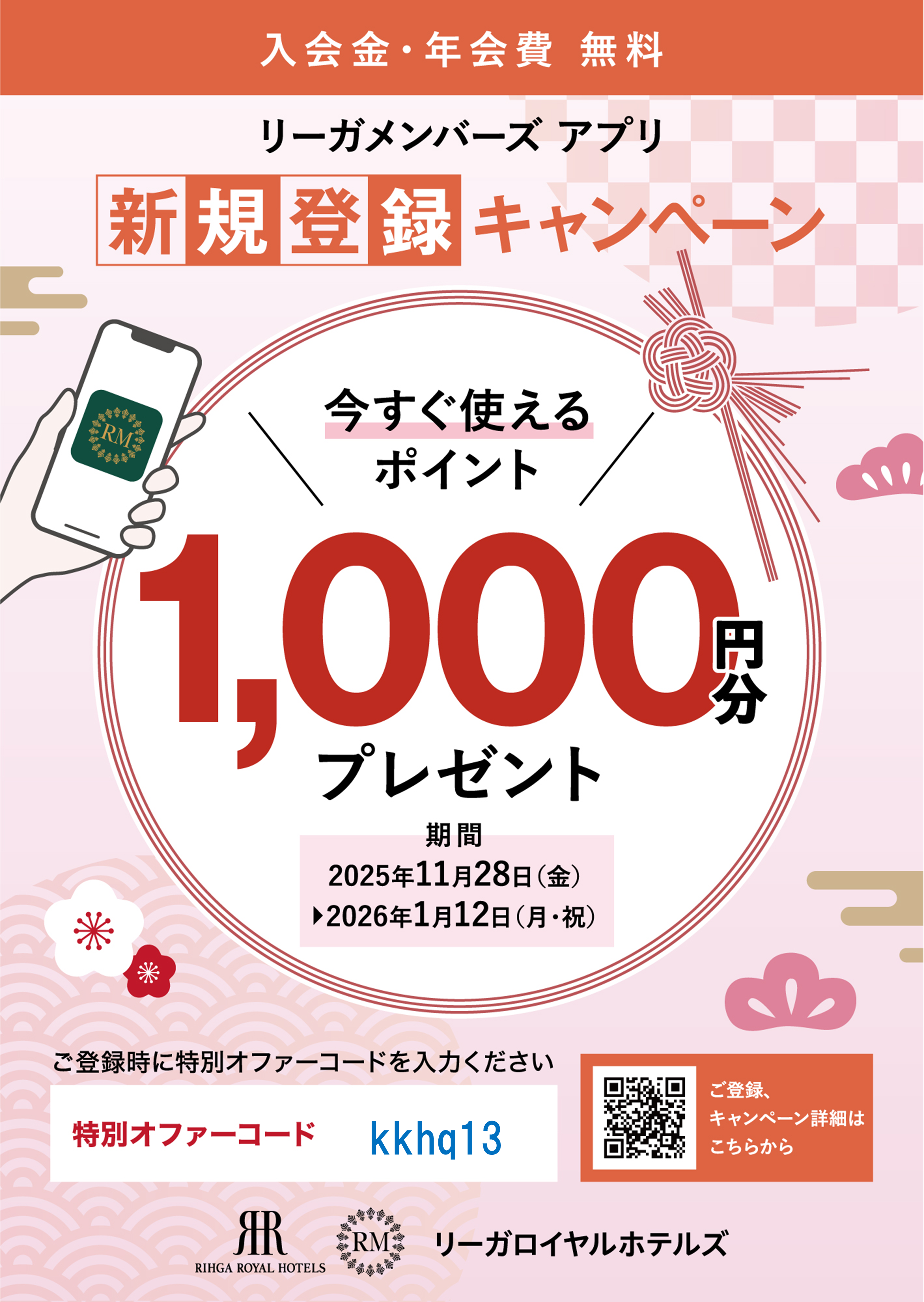 リーガメンバーズアプリ登録(入会金・年会費無料)で、