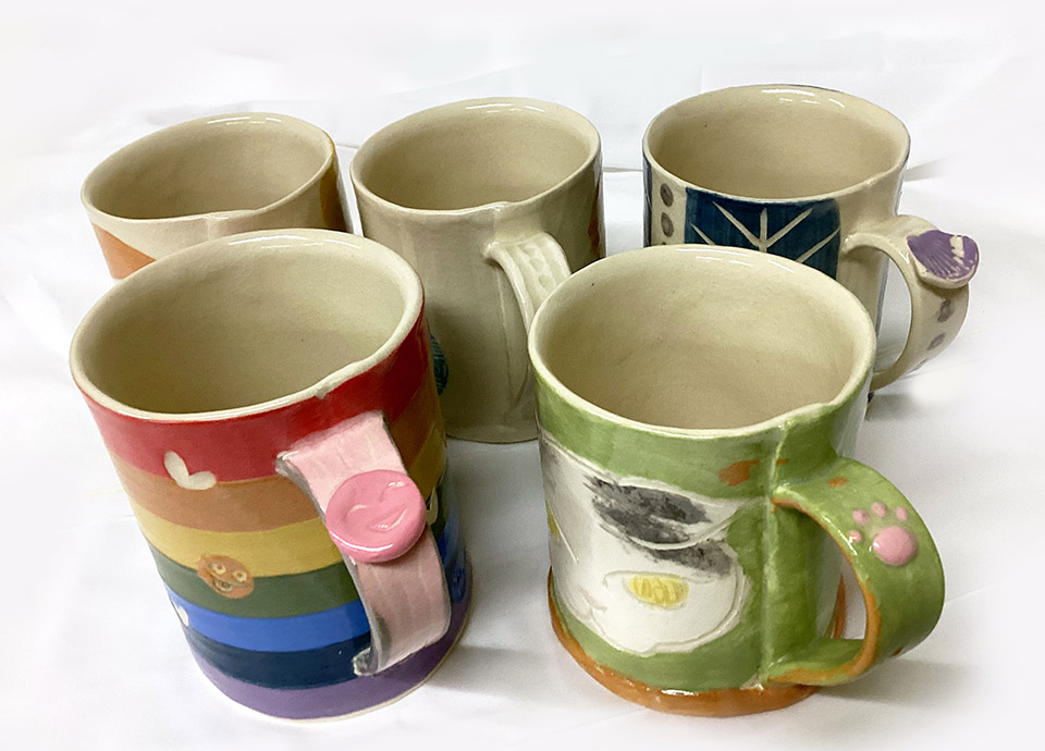 講師が用意した素焼きのマグカップに絵付け体験。自由な発想で思い思いの柄を描きましょう。焼成(約3週間)後にお渡しします。 2026年5月5日(火・祝) 13:30~15:30 ¥3,850(材料費・焼成費含む) 井上 和代(陶芸家)